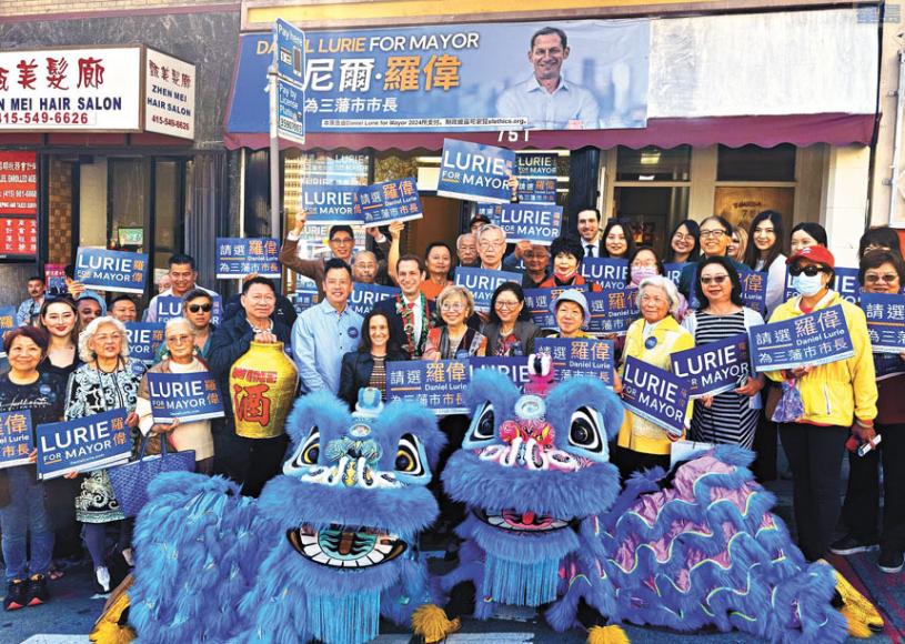 三藩市市長候選人羅偉(Daniel Lurie) 在華埠企李街的競選辦公室,周五(6日)舉行開幕儀式。前市參事鄧式美(Mabel Teng)、前三藩市警局華裔指揮官葉培恩(Paul Yep)和前中華總會館總董李殿邦等超過50人到場支持。