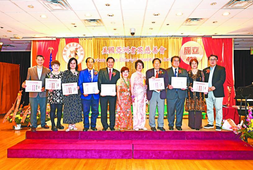 亞洲耆英慈善會成立42週年慶典暨籌款餐會隆重舉行▍僑社記者馬紅兵報導 ▍■總裁李兆祥(右4、總裁林志強(左5)、寧陽總會館主席雷華欽伉儷(右2、3)等善長及僑界首長,捐款樂助耆英會長者,福有攸歸。 馬紅兵攝■耆英慈善會領導與顧問,與中領館姚瑤領事、溫馨領事、及主禮嘉賓、僑界首長合照。 馬紅兵攝美國亞洲耆英慈善會(簡稱耆英會)於8月25日晚假座華埠康年酒
