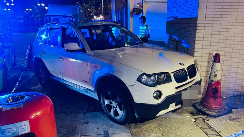 追截期間,該寶馬私家車駛至下鄉道近浙江街時,失控剷上行人路,並撞一座大廈的外牆後停低。意外後,涉事寶馬的男司機立即下車,並向馬頭圍方向逃去;車上一名乘客報稱不適,由救護員送往醫院治理。經初步調查,警方以涉嫌「管有應課稅貨品」將該名46歲姓李男乘客拘捕。