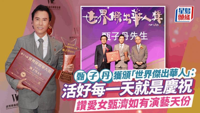 甄子丹坦言對獲奬感到很榮幸,認為意義重大,可以與多位前輩及世界有成就的人士一起得獎,令他更有動力拍好每部電影及做好每件事。談到可會慶祝,他直言拍好電影同活好每一天就是慶祝。提到他將會跟《殺神》首集導演David Leitch合作,翻拍70年代大受歡迎的武打美劇《功夫》(Kung Fu)電影版,甄子丹表示要視乎《殺神》外傳及《功夫》哪部戲先開拍,希望能早日同大家分享消息,他說:「拍西片要好多時唔喺香港。(太太可會陪伴到外地拍戲?)佢忙公司工作同家庭,但處理得好,不過我哋會搵時間見面。」