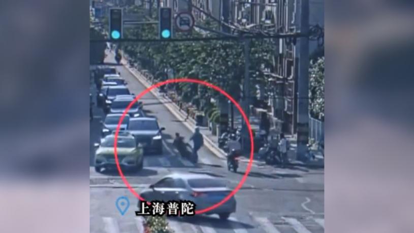 上海男子周某衝紅燈時將電動車司機推倒,害對方被車死。