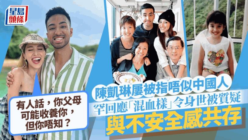 33歲前港姐冠軍陳凱琳(Grace)六年前嫁大22年的鄭嘉穎,翌年誕下大仔鄭承悅(Rafael),二仔鄭承亮(Yannick)已經4歲,細仔鄭承太(Carlos)亦已1歲半大。陳凱琳入行以來,一直被質疑外表「混血」,雖然她已澄清多次,近日受訪時卻再度被提起,不似中國人似被收養,陳凱琳大方回應。