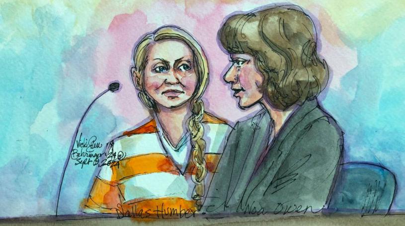 圖:疑犯亨伯周一出庭否認所有控罪。法庭繪圖