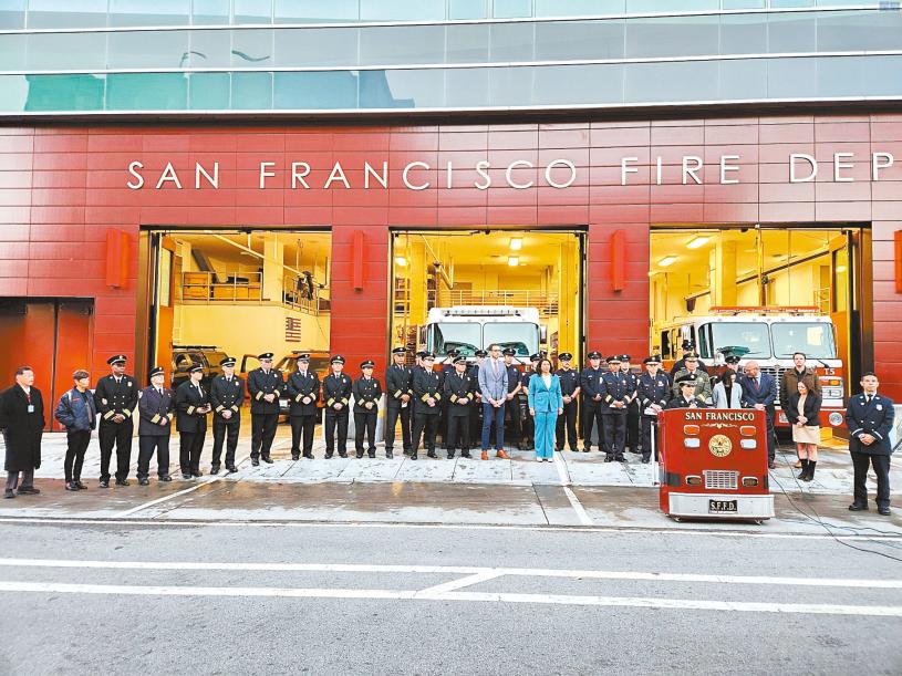 三藩市消防局的紀念儀式上,新任華裔署理局長唐淑儀、市長布里德、州參議員威善高(Scott Winner)、警察局長施革(Bill Scott)、市參事陳詩敏和孟達文等人出席。