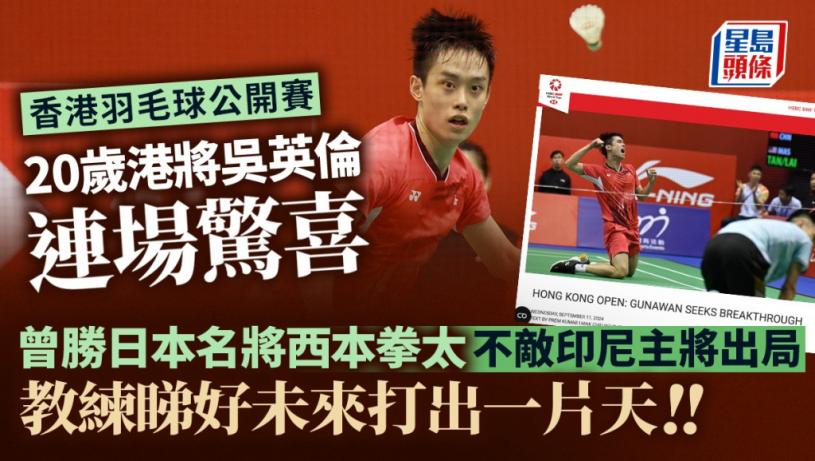 連日來製造連場驚喜、年僅20歲的吳英倫(Jason Gunawan)周五晚在紅館舉行的香港公開羽毛球錦標賽男單8強,跟前奧運及亞運獎牌得主、世界排名第10的印尼主將金廷(Anthony Sinisuka Ginting)激戰74分鐘,以1:2(17:21、21:14、18:21)力戰而敗,完場一刻即時瞓地謝幕,舒發「失落」心情,即將離任的港隊總教練何一鳴認為這只是Jason的開始,認為他未來在羽球界有「一定地位」。