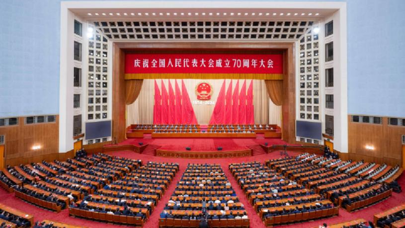 中共中央、全國人大常委會昨晨舉行慶祝全國人民代表大會成立70周年大會。國家主席習近平指出,70年來,人大制度「展現出顯著政治優勢」,「克服了一些國家那種相互掣肘、內耗嚴重和議而不決、決而不行的現象」,為創造經濟快速發展和社會長期穩定兩大奇蹟提供重要制度保障。他重申堅定道路自信、理論自信、制度自信、文化自信,絕不照搬西方政治制度模式。