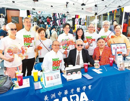 亞美醫師學𥅽在現場推廣介煙活動,亞裔去年在紐約市是唯一的族裔因吸煙引致肺病死亡率增加高達七成,而其他族裔均有下降的紀錄。