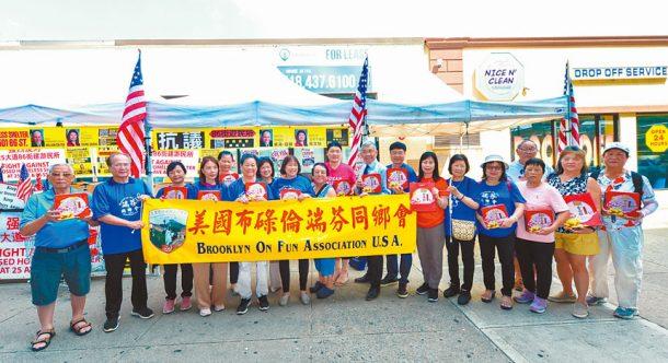 大批華裔民眾為反對市府在布碌崙華裔聚居的賓臣墟86街2501號興建遊民收容所,而從今年7月間便開始晨昏在該地點前示威抗議,至今已接近兩個月,群眾的決心,耐心感動了不少人,布碌崙端芬同鄉會配合即將到來的中秋佳節,於本周在會長梅增新親自領導多名會員親臨現場,向示威的僑胞們贈送了100盒的月餅。梅增新說,中秋是中國人慶團圓的節日,但這些示威群眾為了社區整體利益而可能錯過了和家人團聚慶祝佳節的機會,該會因此提前給他們送上月餅,讓他們感受社區的關心和溫暖。市議員莊文怡也參加了活動,她感謝端芬的中秋佳節來臨之際,為示威群眾送上溫暖,她相信在民眾堅持下,市府最後必定會聽取民意放棄這項計畫。圖示梅增新等向示威群眾送上月餅。圖與文:本報記者