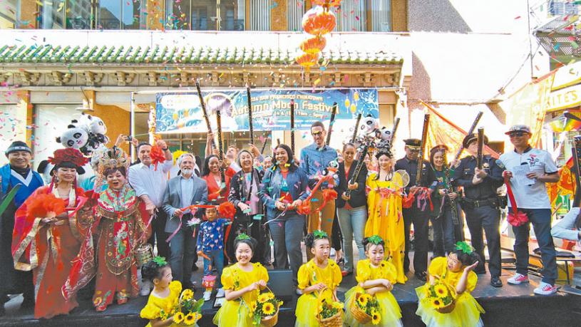 昨天上午11時,華埠商人協會會展李雷綺華、三藩市市長布里德、市參事會主席佩斯金、市府律師邱信福、警察局長施革、助理警察局長拉薩、縣警局長宮本保羅、地檢官謝安宜、加州主計長郭嫻、州參議員威善高、市參事陳詩敏、安世輝等及社區領袖,出席了中秋街會開幕儀式。