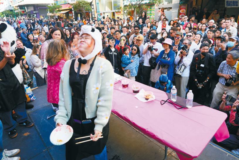 除了傳統的舞龍舞獅、嫦娥吳剛,今年在三藩市華埠由華埠商人協會主辦一連兩天的第34屆華埠中秋街會,還迎來了大熊貓,或憨厚可愛的行走,或隨風飄揚,而首次出現的街會的吃餃子大賽,為中秋街會掀起了高潮。