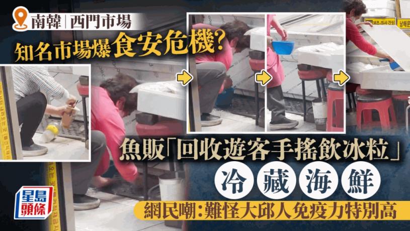 南韓歷史最悠久、最大規模的集貿市場大邱「西門市場」,爆出有魚販竟然撿取遊客飲過的手搖飲,「回收」杯內的沾有遊客涶液的冰粒,用來冷藏魚貨,衞生成疑之餘更令人噁心,事件震驚當地網民,紛紛狠批有關商販做法離譜,更有怒指,「如果連冰塊都買不起,就應該收檔!」