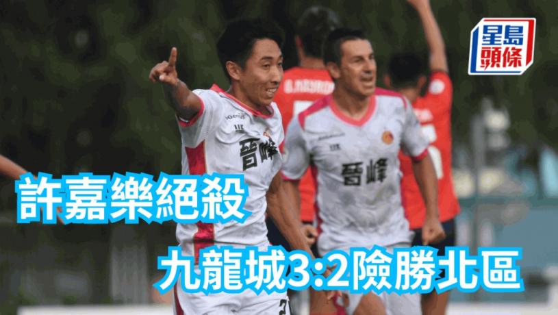 九龍城周日作客鬥北區變成大手交易,上半場10分鐘尼天奴罰球令北區肯迪擺烏龍,34分鐘再有何瀧浩傳中予卡朗頂入,半場領先北區2:0。易邊後北區狂攻,陸續換入朱偉鈞、何振廷及波比加強活力,79分鐘及81分鐘有古杜拉及肯迪連環建功追平2:2。然而,九龍城補時階段突擊得手,伏兵門前的許嘉樂妙射入網,幫助九龍城最終以3:2全取3分。