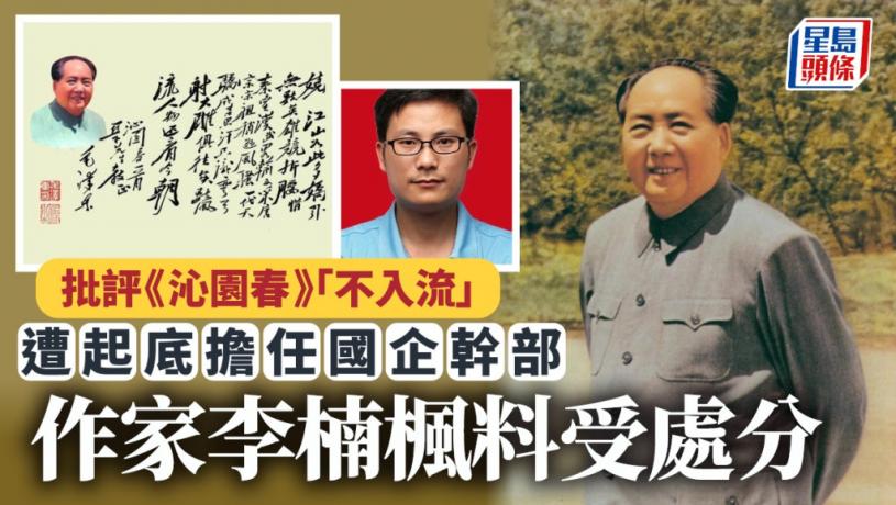 9月11日,「作家李楠楓」在網上發表文章,指《沁園春•雪》跟宋朝蘇東波、辛棄疾等豪放詞比起來,簡直是「不入流」,點評「北國風光,千里冰封,萬里雪飄」很俗氣,「山舞銀蛇,原馳蠟象」是湊數字,還說「這樣的詞句,放在兩宋時期,只能說是下品,或者下下品」。