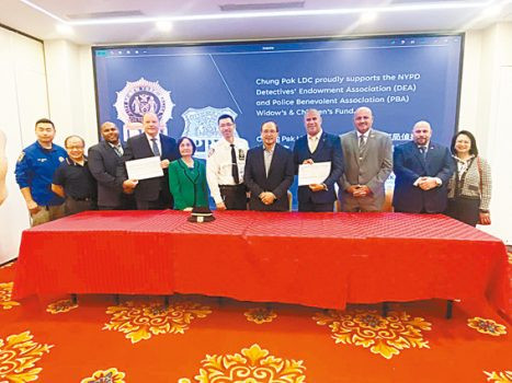 松柏大廈經濟發展公司(Chung Pak LDC)於18日向紐約市兩大警察工會捐款共一萬元,以示對執法單位的支持,松柏大廈董事長伍文遂表示,此舉意在肯定警察在維持社會秩序、保護市民安全的重要角色,希望以此幫助和鼓勵相關人員,也促進華人社區與執法單位間的互信與理解。