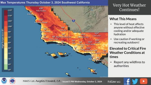 南加州地區週四熱浪持續。美國國家氣象局