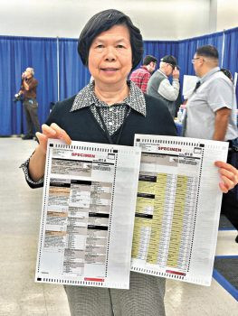 選委會亞裔社區外展專員劉珍呼籲使用紙張投票的選民,必須留意有411A與411B兩張選票,同時留意是正反面的。 梁敏育攝