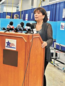 芝加哥選委會主席瑪麗雪賀蘭茲召開新聞發布會,宣布超級投票站與選委會辦事處6樓,10月3日啟動提前投票。 梁敏育攝