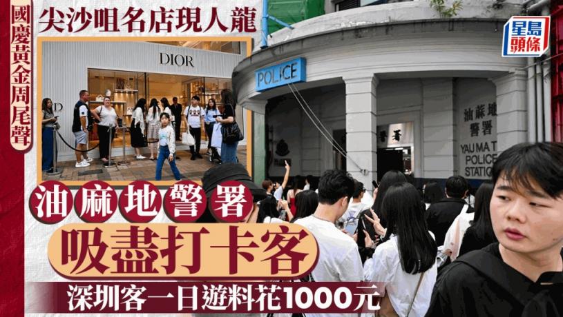 一連7日的國慶黃金周臨近尾聲,《星島頭條》記者今日(5日)到熱門旅遊打卡點包括尖沙咀及油麻地警署觀察,發現多處地點人頭湧湧,部分打卡位更需要排隊,不少內地客表示利用假期最後幾天,在港一日遊。
