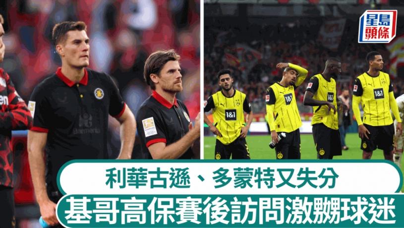 德甲兩大勁旅周六齊齊失分,衛冕冠軍利華古遜主場對升班馬基爾領先2球下,最終被追和2:2,教練沙比阿朗素直言踢完歐聯後表現總有起伏。而多蒙特就作客1:2不敵柏林聯,近4輪德甲共失11球,防線中門大開,正選門將基哥高保(Gregor Kobel)賽後受訪時竟然表示球隊踢得不錯,惹來外界和球評家批評。