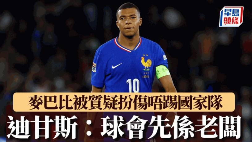 法國主帥迪甘斯上周公布新一期國家隊名單,指基利安麥巴比因傷落選。不過,此子在剛過去的周末為皇家馬德里正選上陣,被質疑他詐傷逃避國際賽,更被批評他沒資格做法國隊長。迪甘斯周一受訪指麥巴比不會違背國家隊,但同時直言始終球會才是老闆。