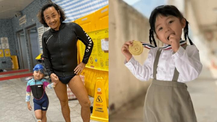老來得女的黃澤鋒,對女兒寵愛有加,他為養家教泰拳又教游水,基本上一星期做足七日。黃澤鋒加入TVB前於1981至1985年是香港游泳代表隊成員之一,躑躑跳的愛女亦是一名運動健將。小黃妃今日(8日)在IG出post並hashtag寫道:「#人生的第一塊游泳金牌 #元朗區賀國慶 #兒童水運會 #努力係有成果既 #好朋友齊齊攞 #金銀銅牌 #齊齊繼續進步 #謝謝栽培與提拔 #普揚體育藝術學會 #魔鬼教練爸爸 #魔鬼教練黃sir」。