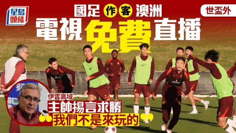 國足將於今日下午5:10出戰世界盃亞洲區外圍賽第3圈C組賽事,作客澳洲。港台32台將會免費直播。國足首2戰全敗,當中包括作客遭日本大炒7蛋,不過澳洲2戰亦只得1分,更於上月底易帥,因此主帥伊雲高域矢言勢要趁機搶分,強調今次作客不是去玩。