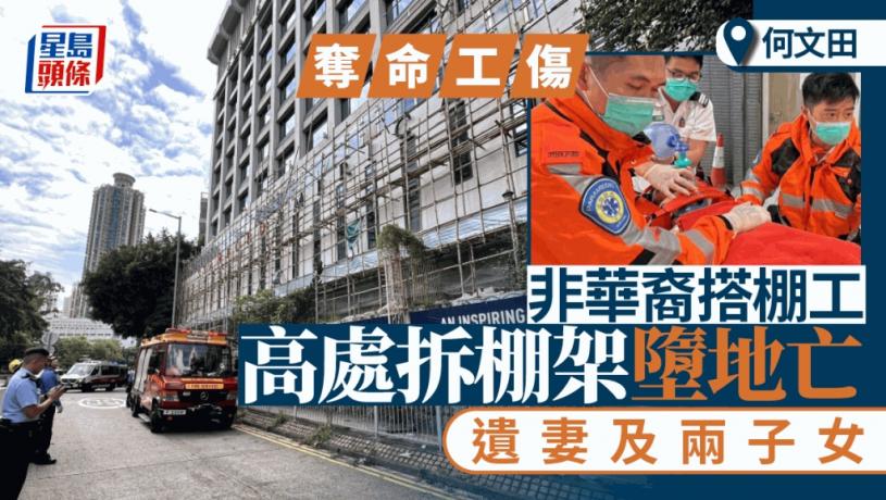 何文田發生奪命工業意外。今日(13日)早上11時38分,一名棚架男工人在何文田文福道一所正進行工程的國際學校工作,其間從15米高的棚架墮下,重傷昏迷。救援人員趕到為受傷工人施以心外壓急救,其後將他送往廣華醫院,惜終告不治。警方將案件列工業意外,正調查意外原因。
