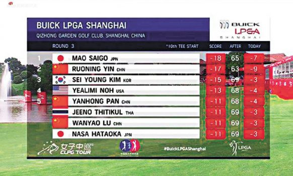 日本選手西鄉真央同樣在17號洞,五桿洞抓到老鷹的情況下,超越殷若寧,取得領先。西鄉真央來到17號洞,五桿洞的時候落後殷若寧一桿,不過這個洞她拿下老鷹,最終交出65桿,三輪成績為198桿,低於標準桿18桿,反過來領先殷若寧一桿。