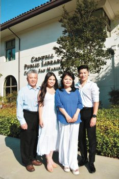 黃群雁全家福。左起:夫婿陳威宏法官、女兒Natalina、黃群雁、兒子Nathaniel。 受訪人提供