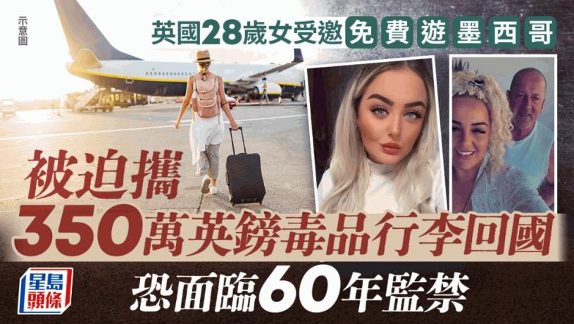 英國一名女美容師早前在葡萄牙旅遊期間,受兩名男子邀請到墨西哥旅行。到埗後兩名男子威脅她攜帶兩件行李回國,最終在美國過境期間,被查出行李中有350萬英鎊毒品,或面臨60年監禁。