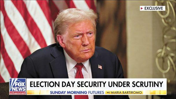 特朗普在接受媒體訪問時表示,擔心投票日有左翼搞事,建議出動國民警衛隊甚至軍隊守護。 電視截圖