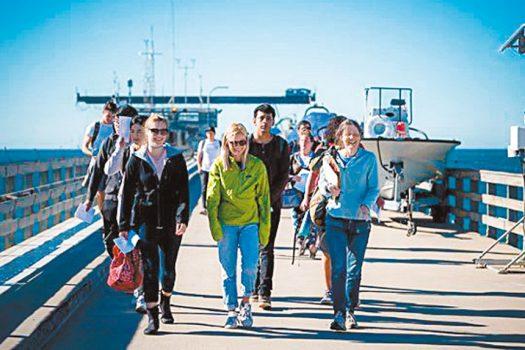 教授吉爾(Sarah Gille)在斯克里普斯碼頭上授課。UC San Diego