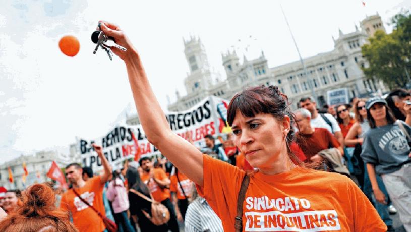 面對租金失控高漲,2.2萬名憤怒的西班牙馬德里年輕人周日上街抗議,要求房東降低租金、批評銀行和財團剝削,並要求住屋部長下台,以及政府拿出緊急對策。他們以學生和青年為主,許多人高舉鑰匙抗議。