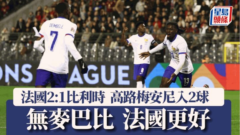 法國在周一歐洲國家聯賽A2組,作客2:1擊敗比利時,連同上仗大勝以色列,在本輪國際賽期2連勝重上正軌。該隊在今個國際賽期沒有徵召攻擊皇牌兼隊長基利安麥巴比,進攻流暢度和成績反而更好,射手高路梅安尼(Kolo Muani)沒有束縛下發揮亦更理想,披上法國球衣首次梅開二度,與翼鋒奧士文尼迪比利一樣,遠離麥巴比才能發揮威力。