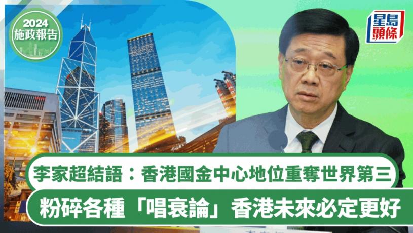李家超更指:「在共同努力下,香港國際金融中心地位上升一位,重奪世界第三,粉碎了各種『唱衰論』;世界競爭力上升兩位,排名第五;人才競爭力上升七位,重上世界十大;世界排名保持第一的有『投資環境』、『國際貿易』、『商業法規』、航空貨運量等。」