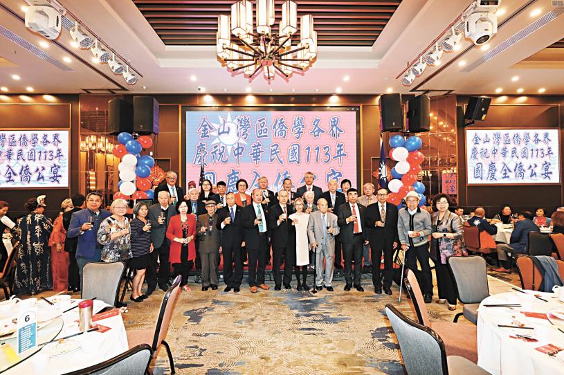 10月10日晚上六時,舊金山灣區僑學界假座南三藩市半島豪苑舉行慶祝雙十國慶公宴。台北駐舊金山經濟文化處處長賴銘琪伉儷、副處長朱永昌;副組長張文榮;華僑文教中心主任劉岱欣;雙十國慶籌備委員會共同主席余武良、鄧灼照、張耀廷、謝躍池、林炳昌、趙川三、張人睿、葉雲河、王千龍;共同副主席蔡寶鼎、李學英、梁坤、王進德;總幹事周達昌、于愛珍、王維、關健中、呂玉貞、陳俊明、林馬玉冰、魏德珍、楊昆山、陳夏儀;副總幹事楊子超、關宗魯、劉梓揚、陳龍贊、梁國緯、劉華楷、羅 泉、黃偉躍、張博器、嚴志堅、陳健民、王振南、陳德業、呂明濂、林鴻 暨僑務諮詢委員、僑務委員、僑務顧問、僑務促進委員,以及僑界嘉賓出席聯歡,共襄盛會。副總幹事劉華楷、翁秉鏗夫人共同擔任大會司儀。