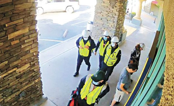 搶劫團夥在犯案時身穿建築工人背心和戴口罩。聯邦加州東區檢察官辦公室