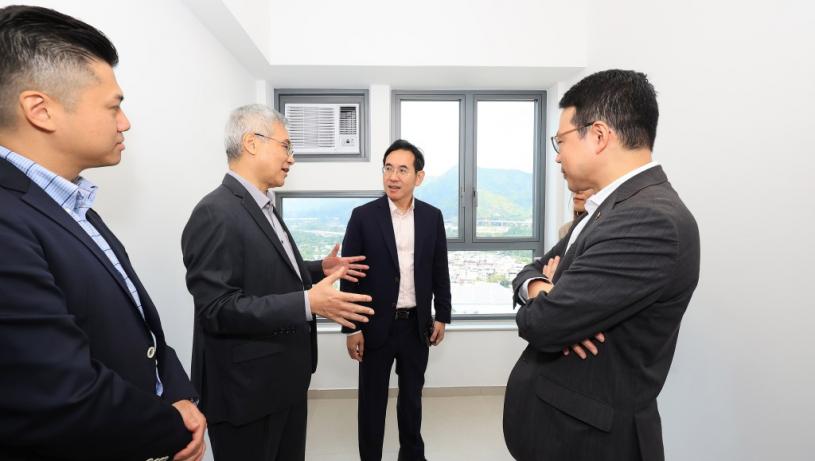 房協主席凌嘉勤及行政總裁陳欽勉,與發展局副局長林智文早前一同視察「樂翹軒I」資助出售房屋及「樂翹樓1座」出租屋邨的現樓狀況。
