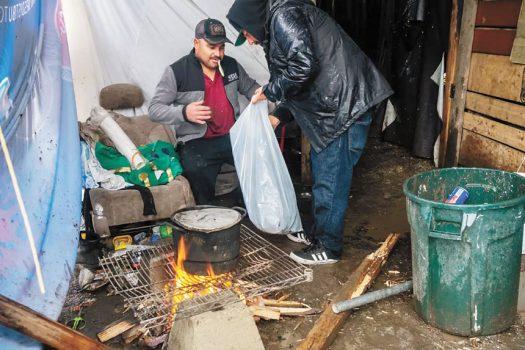 遊民在洛杉磯臨時帳篷中升火煮食。洛杉磯時報