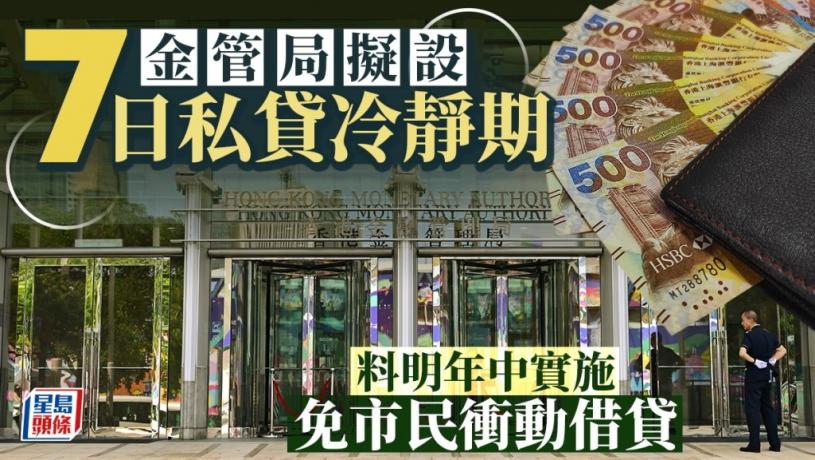 為免市民出現衝動或過度借貸,金管局今年初已透露會就這類消費信貸產品研究引入冷靜期,現終有下文。據悉,金管局擬要求銀行需為無抵押消費信貸產品提供至少7日冷靜期安排,即期間客戶毋須繳付任何費用都可隨時取消貸款,落實時間表暫定為明年6月底前。