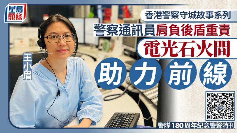 警方上月推出了警聲特刊《香港警察守城故事》,收錄了18位來自各職級人員的故事,當中包括任職警察通訊員30年的王小眉,她不單要快捷、清晰且準確地向前線執勤同事提供資訊和協助調配資源,亦不時要接聽市民的緊急召喚,故此經常於電光石火之間處理多項任務,更要確保不能忙中出錯。作為警隊的「後盾」,她認為其職務與前線人員同樣具有挑戰性,因而樂此不疲:「現在的工作一樣可以服務市民、回饋社會。」
