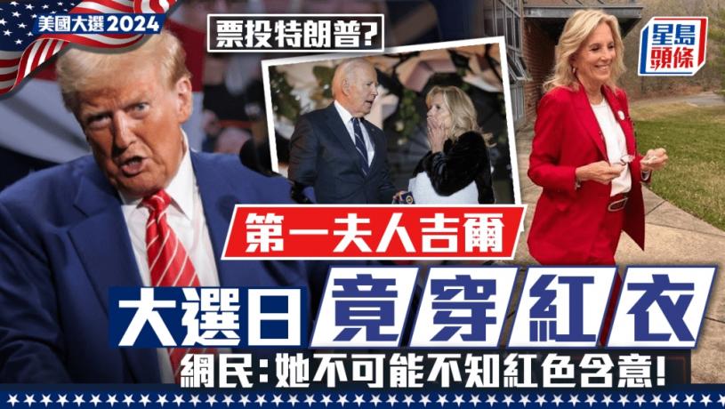 在美國大選投票日,第一夫人吉爾穿著共和黨代表色的「紅褲裝」前往投票,引發社交媒體熱議,不少網民揣測此舉別有深意,笑言吉爾穿著「讓美國再次偉大」(MAGA)的紅色去投票,定是投票給特朗普。加上總統拜登並未出席民主黨總統候選人賀錦麗的選舉觀禮活動,更增添了許多陰謀論色彩。
