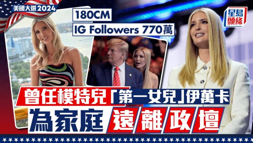 特朗普有三任妻子,身高達180cm的伊萬卡是他和第一任妻子所生的長女,15歲時曾和母親一樣成為時裝模特兒,其後更曾於著名電視劇《花邊教主》(Gossip Girl)中客串。伊萬卡經常在instagram發布照片分享生活,現時有770萬位粉絲。