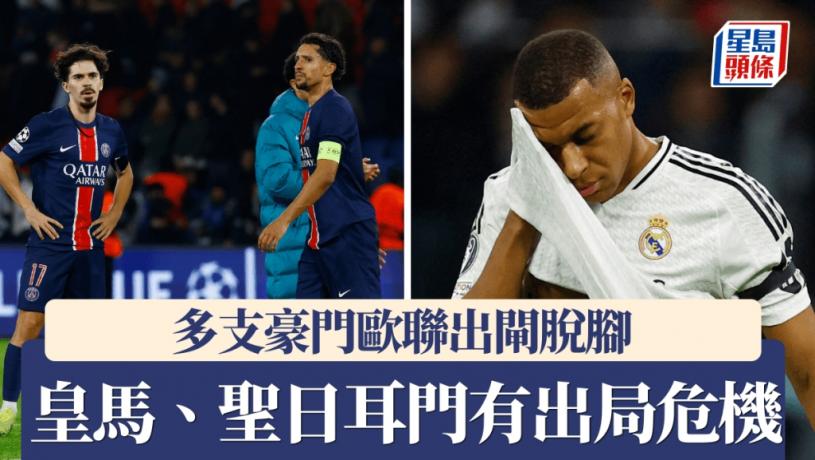 今屆歐聯,棄用以往分組賽形式,改為「瑞士式」聯賽制。新賽制下,入圍球隊由32支增至36支,每隊共踢8場比賽,完成8輪賽事後最高分8隊直入16強,9至24位就躋身淘汰賽附加賽。然而多支豪門出閘脫腳,有機會未能在36隊中排前24位,無緣淘汰賽,當中以巴黎聖日耳門最危險,他們在周三主場1:2不敵馬德里體育會,4輪1勝1和2負只有4分,目前排25位,球隊最大問題是入球少,4仗僅入3球。