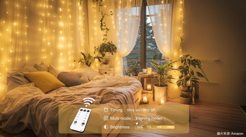 JMEXSUSS聖誕窗簾燈,讓家裡一秒變成溫馨夢幻的小天地!這款9.8×9.8英尺的窗簾燈擁有300顆LED燈,亮度足夠覆蓋大部分窗戶或牆壁,為空間帶來柔和的暖白光氛圍。10條燈串隨心排列,簡單的固定操作後就能輕鬆變出滿牆光芒,不論是客廳、臥室還是婚禮現場,都能瞬間營造出浪漫又溫馨的氛圍。8種照明模式任意切換,不管是柔和閃爍還是恬靜常亮,完美匹配每一個派對時刻。安全性方面,UL認證的30V低壓插頭讓你無憂使用,即使長時間點亮也不會發熱。這款燈的IP44防水等級,即便在戶外也不怕風雨侵襲。這個聖誕,用它來點亮您和家人溫馨的共享時光,營造節日最美的回憶吧!