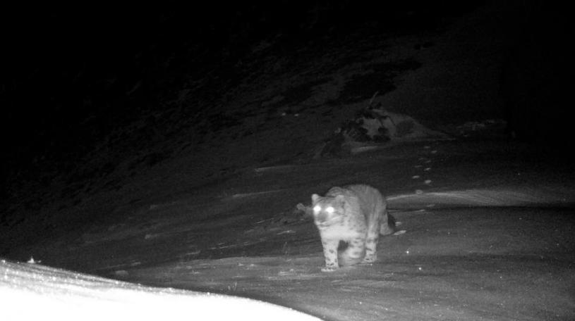 在香格里拉國家公園候選區監測點拍攝到的雪豹影像。(中國科學院昆明動物研究所)