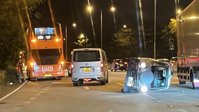 目前警方正調查車禍原因,司機聲稱駛經上址時因強風吹至失控導致車禍。意外期間現場部份行車線封閉,交通繁忙。