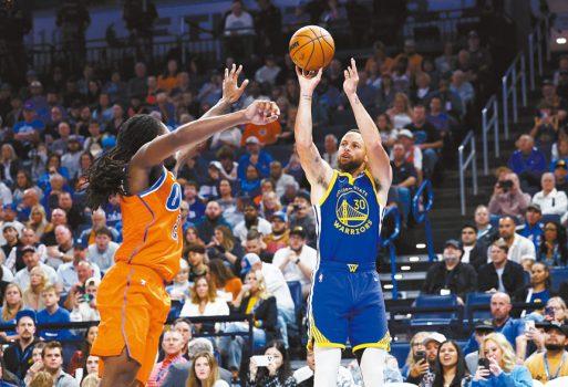 NBA常規賽,金州勇士10日面對地主雷霆,差一點敗光30分領先優勢,憑藉決勝時刻庫里的關鍵三分球及全場猛砍36分7助攻5籃板的表現,率隊127:116收下勝利。