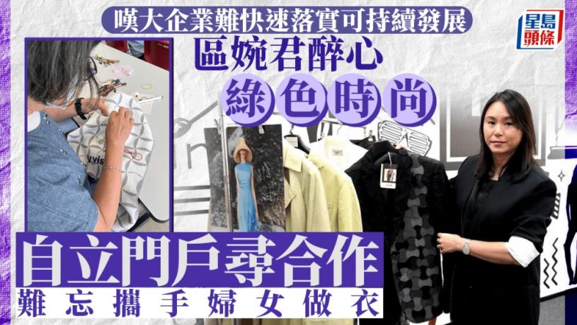 近年,各行各業都把「可持續發展」掛在嘴邊,環保時裝亦逐步搶佔市場。擁有逾20年經驗的時尚設計師區婉君(Vickie),留意到大企業不乏資源,卻難以快速實踐理念,故成立自家品牌大展拳腳,包辦設計、採購、樣板、生產及營運,用自己的方法說好綠色時尚的故事,再反向邀請大品牌聯乘合作。她難忘招聘婦女縫合拼布做衣,並把時裝帶至外地參展,讓本地工藝得以被看見。她坦言,小眾品牌要在環保範疇摻一腳絕非易事,但會繼續堅守,盼推動更多人加入可持續行列。