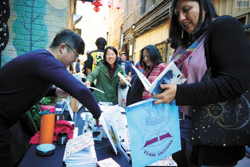 這是中華文化中心首次在上百年歷史的舊呂宋巷裡,舉辦一場手工製作書刊報章的會展,11位灣區的藝術家、獨立出版人,向遊客、讀者們展現了別出心裁的藝術文化活動,同時也作為慶祝「舊呂宋巷41號」10周年紀念系列活動之一。活動展示了灣區多元的獨立藝術家和小巷手作書誌節出版商陣容,提供了一個探索印刷媒體作為講故事和社區建設工具的獨特機會。聞風而來的粉絲們在狹窄的小巷認真挑選珍藏版本。